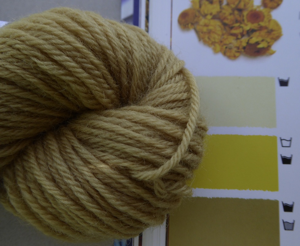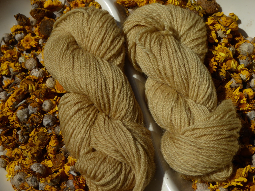 According to Jenny Dean in Wild Colour, at least equal weights of flower heads to yarn should yield a cream on unmordanted yarn and a nice vibrant yellow on alum mordanted yarn with more dyestuff creating deeper colours.