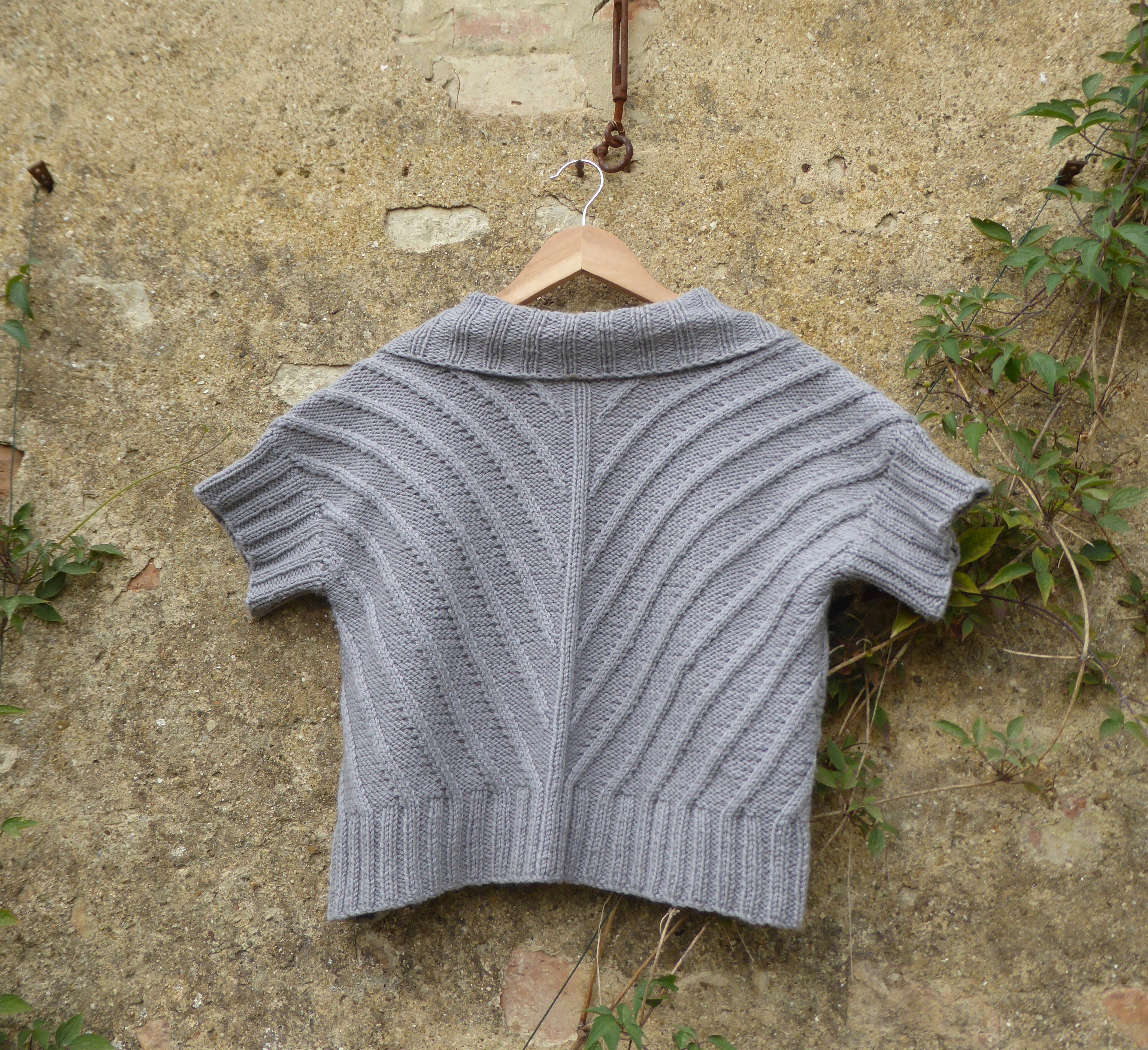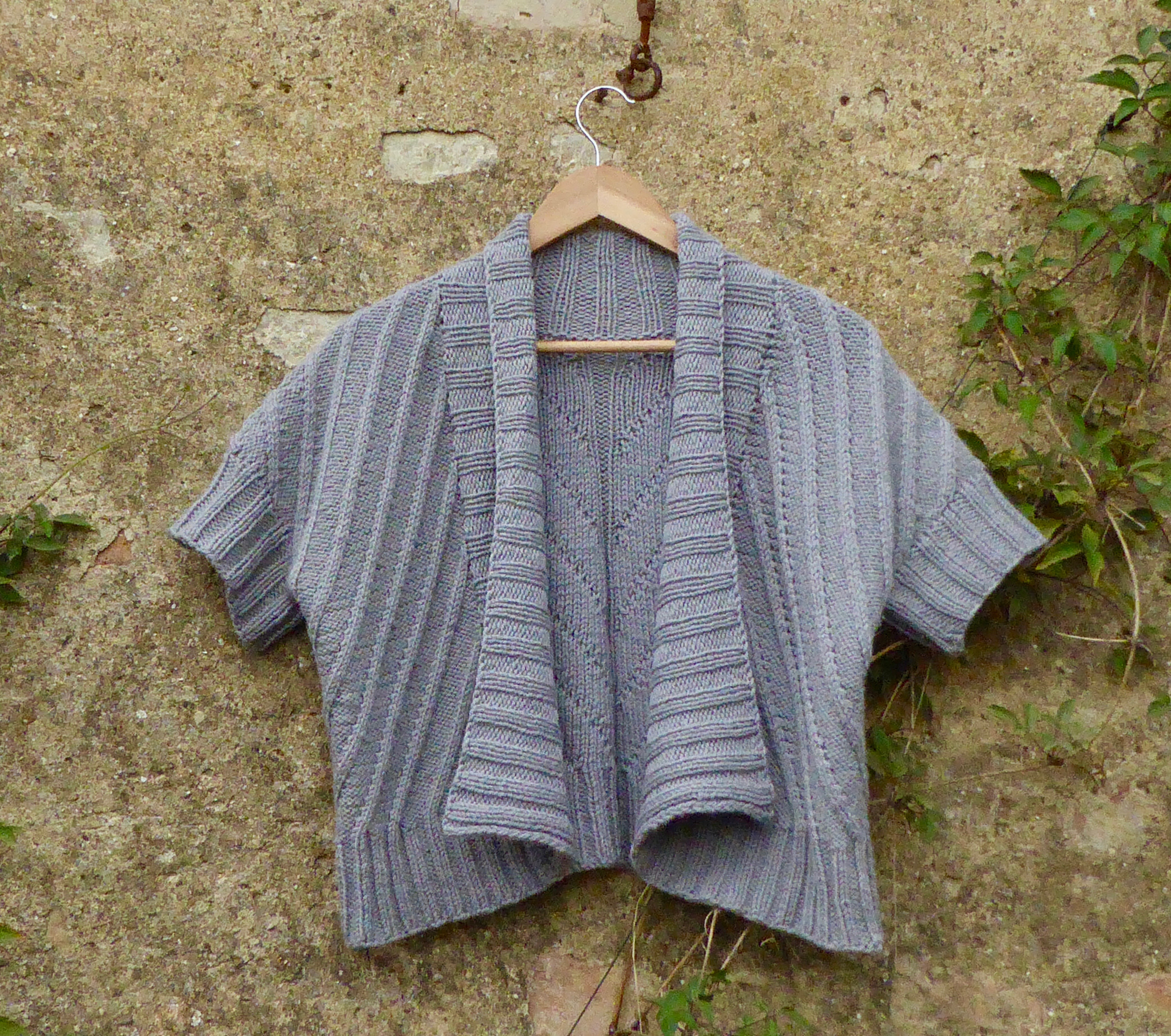Back in 2009 when it was all the rage, I knit a February Lady cardigan by Pamela Wynne with this yarn in purple and have worn it loads since. It still looks great, if a little snugger (that’s down to me and the menopause, not the yarn). With time and increasing rarity value, I had been saving and perhaps more accurately and appropriately given its name, hoarding this Magpie yarn for a special project. Part of the issue was also that I was limited by the fact that I didn’t quite have a garments worth, but had enough to make me reluctant to use it on multiple accessories. So I began to wonder whether I had sufficient yardage to make a Fishbone without the full sleeves. Modifying to a shrug rather than long sleeve cardigan would transform this into the perfect throw over, shrug off, knit. That way it could accommodate my hot flushes while also staving off the icy chill of the community library where I volunteer and which is glacial in winter.